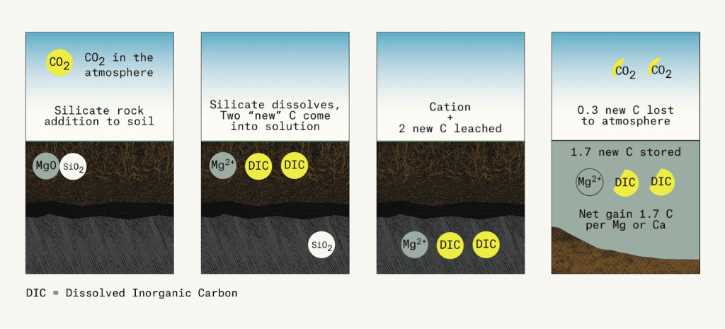Perdue AgriBusiness and Eion have entered into a carbon removal agreement where Perdue will deploy enhanced rock weathering (ERW) within its supply chain. Perdue grain farmers are expected to remove approximately 3,500 tons of CO2 by applying olivine, a magnesium iron silicate known to naturally sequester carbon dioxide, on farmland in the Mid-Atlantic region. This partnership is an instance of insetting projects which are interventions designed to reduce greenhouse gas emissions within a company's value chain, thus offsetting its carbon footprint.